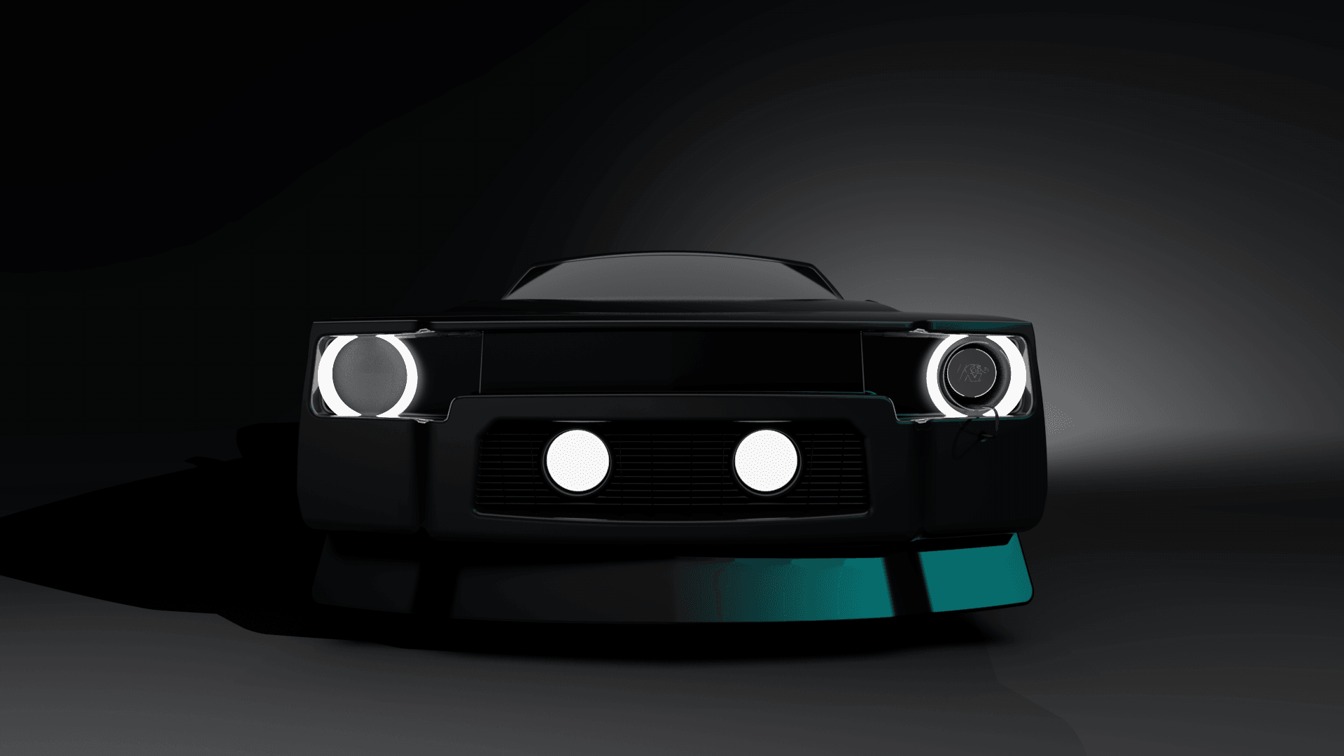 Front view of the vehicle, showing the wide and boxy front end influenced by the American Muscle