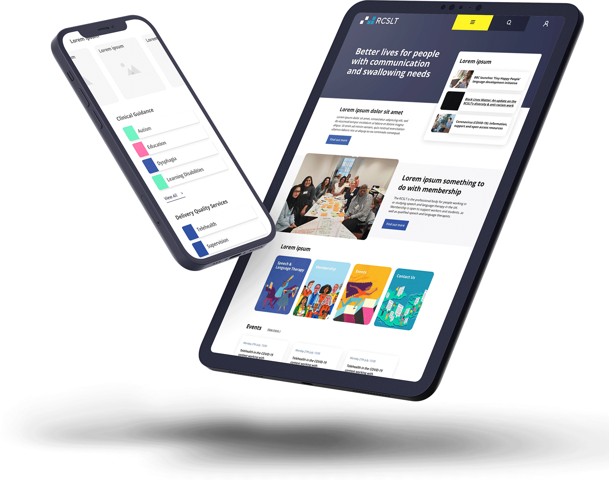 Royal College of Speech & Language Therapy (RCSLT) was an Arthurly project that I worked on for over two and a half years. The users of the RCSLT's services were professionals, working with or often users themselves who had learning difficulties affecting the how they would take in the information and interact with the design. Naturally, the client had a lot of accessibility concerns regarding their digital offering. It was important that in as part of my role being the only designer on this project that I dove into what these were and how they were currently not achieving accessibility for their users. It was important to note what considerations we needed to take moving forward to create the most optimal user experience. It was important to communicate these designs, and the decisions behind them clearly to the product owner; taking them on a journey through the design process to help make them better understand the work involved.