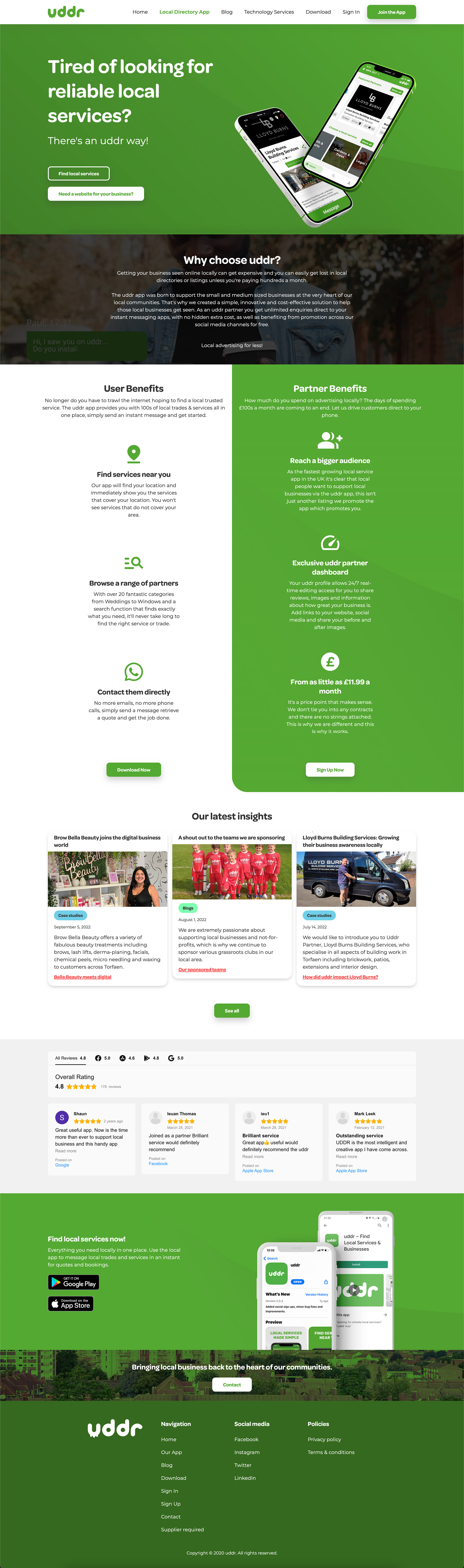At uddr services I was responsible for the design and hosting of their new CMS platform. In addition to this I also worked on a web application improving the user experience when signing up to the platform. I worked with, and managed developers and junior designers to execute a fulfilling user experience. I also had a hand in the user testing and development of the uddr application as well as several bespoke CMS applications. I took projects from conception to completion, owning and managing the complete product cycle, and often worked with key stakeholders to fulfil user needs.